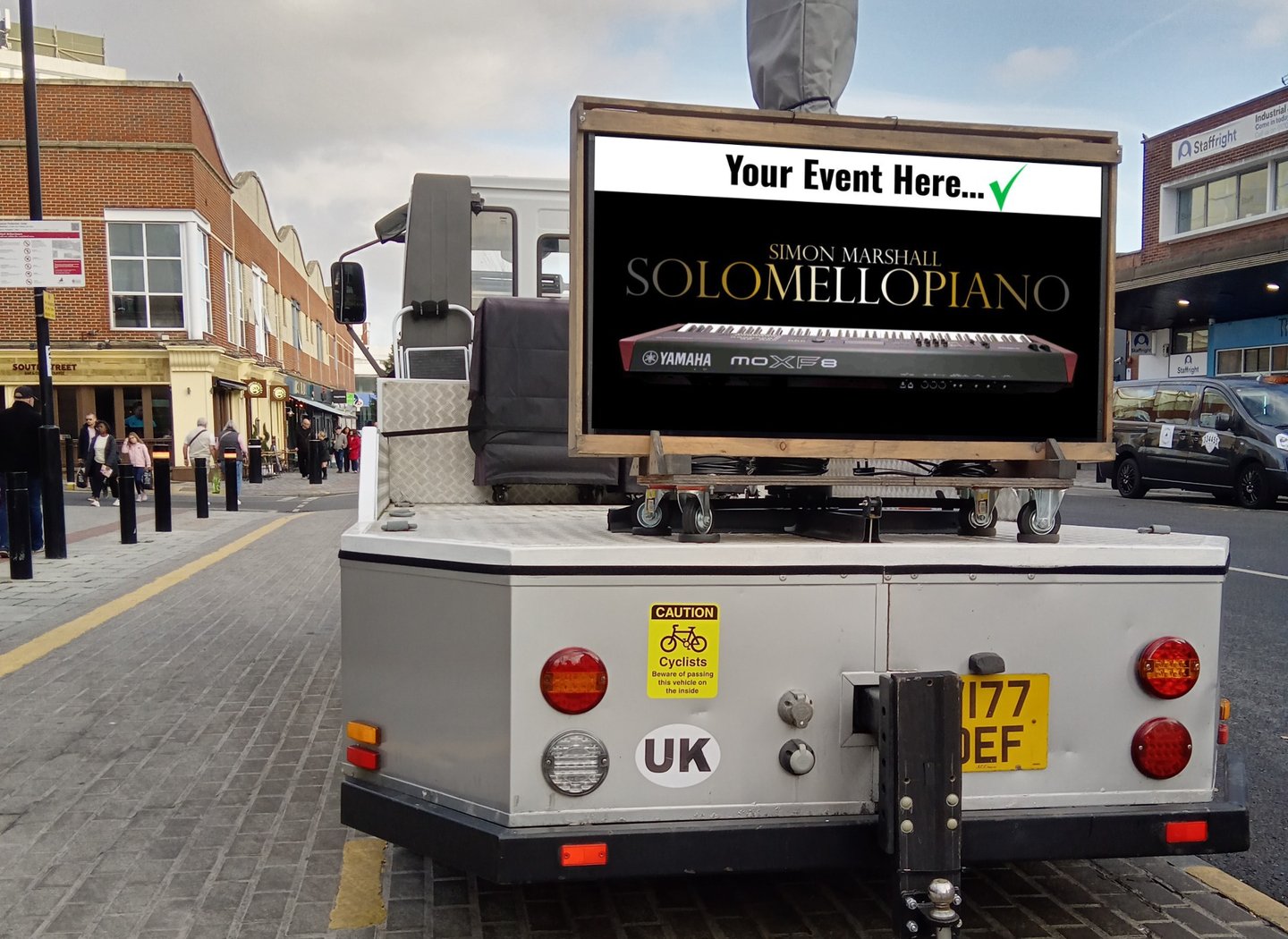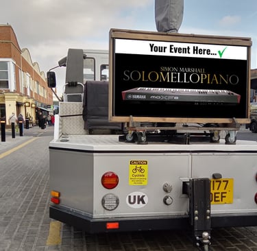 NEW: Mobile Digital Signage on the NEB/SoloMelloPiano Daylight Display Monitor (10x brighter than an ordinary TV).